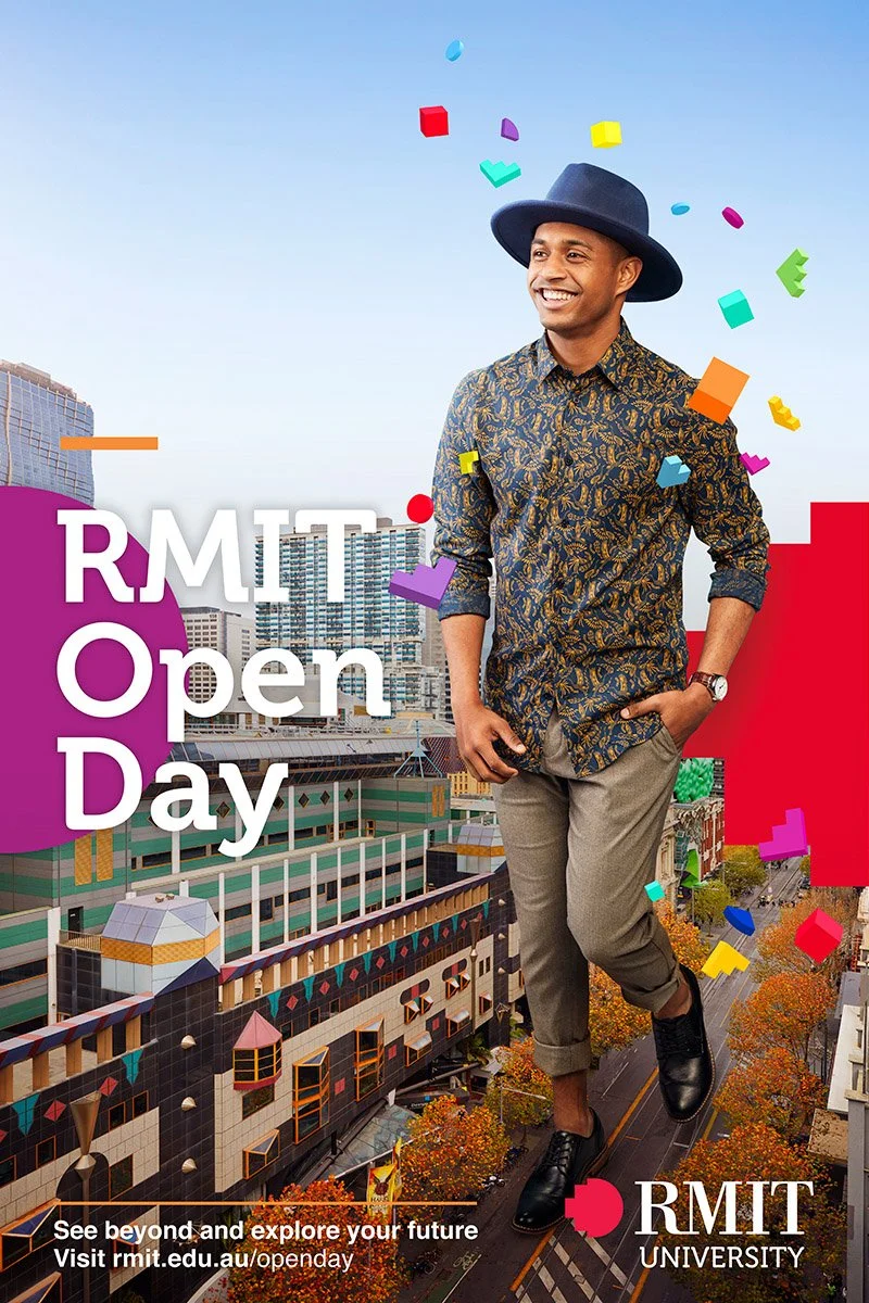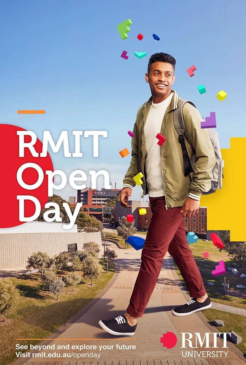 Shot across the 5 campuses of RMIT to promote their open day - we were challenged with ensuring the perspectives of the hero talent worked within the location shots. We shot the talent in studio (all were actual RMIT students)first then composited them onto the location background plates. Casting, photography and post production completed by HELL. 🪜